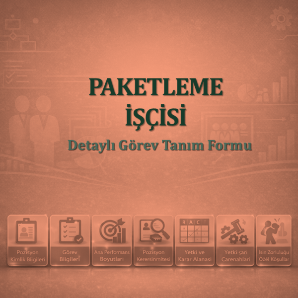 Bu Paketleme İşçisi Görev Tanım Formu, üretimi tamamlanmış ürünleri, müşteri taleplerine veya şirket standartlarına uygun şekilde paketleyen, etiketleyen, paletleyen ve sevkiyata hazır hale getiren, paketleme hattında çalışan operasyon personelinin tüm sorumluluklarını detaylandıran kapsamlı bir şablondur. Bu form, paketleme işçisi pozisyonu için işe alım süreçlerinde, performans değerlendirmede, görev tanımlarının netleştirilmesinde ve organizasyon şemalarının oluşturulmasında kritik bir rol oynar.