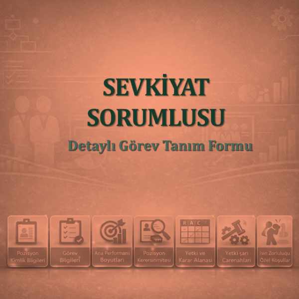 ⚙️ KOBİ Sahipleri / Girişimciler Şirketlerini kurumsallaştırma sürecinde lojistik ve sevkiyat birimindeki sorumlu pozisyonlarını doğru tanımlamak, profesyonel personel alımına hazırlık yapmak, sevkiyat süreçlerini standartlaştırmak için kullanabilir.